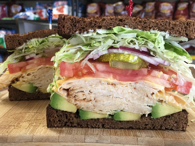 Bold Chipotle Chicken, American cheese on Squaw with lettuce, tomato, onion, pickle, honey mustard & mayonnaise. Avocado Additional.