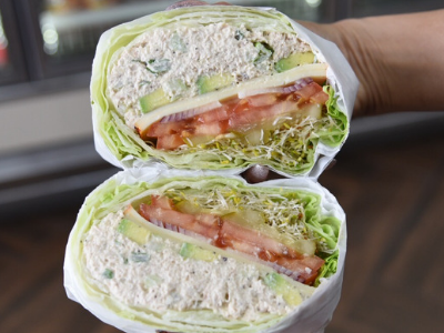 Lettuce wrapped filled with Tuna salad. Avocado additional.