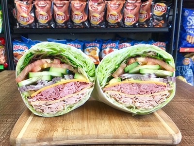 Lettuce wrap filled with Honey Maple Turkey, Smoked Gouda, Honey Maple Ham, Cheddar Cheese, Red Onion, Cucumber, Mixed Greens, Tomato, Avocado, Honey Mustard & Mayo