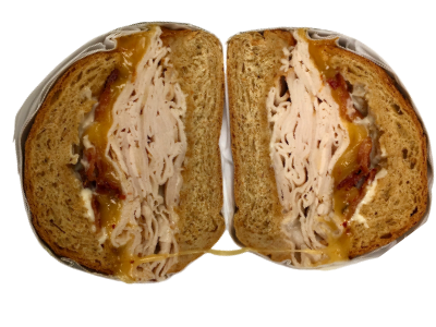 Mesquite Wood Smoked Roasted Turkey Breast & Melted Chipotle Gouda Cheese served HOT with Extra Crispy Bacon & Mayo on a Toasted Whole Wheat Roll