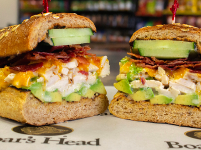 Homemade Chicken Salad served hot with Melted Sharp Cheddar Cheese, Extra Crispy Bacon, Cucumbers, Avocados, & Chipotle Mayo on Toasted Wheat Oat Roll