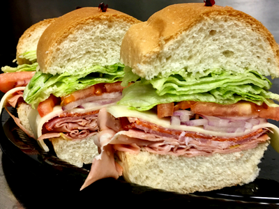 Mortadella, Hot Cappi, Pepperoni, Genoa Salami & Provolone Cheese with lettuce, tomato, onion